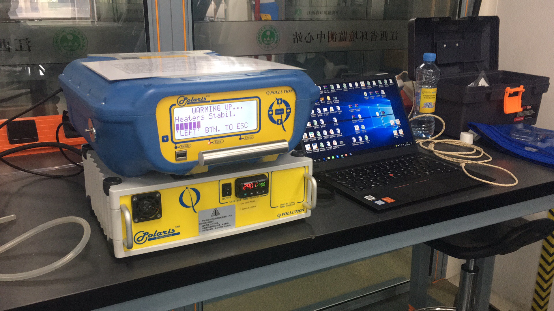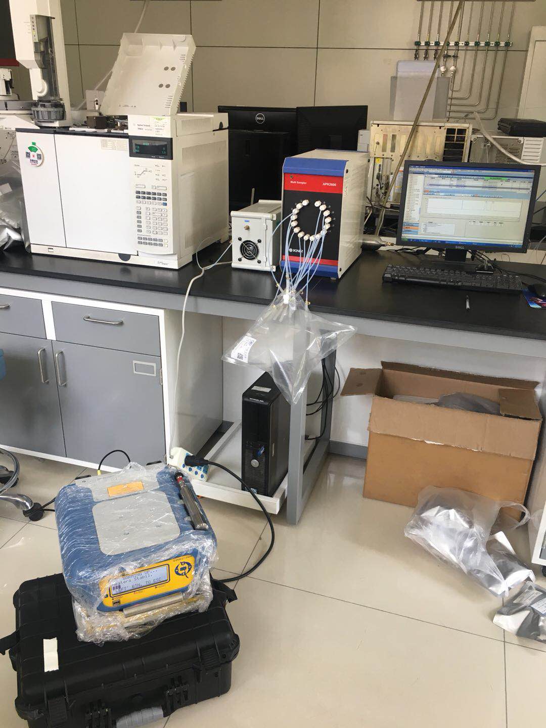 山东省站测试现?。ㄍ贾械缒耘员呤俏夜敬淼腁PK2600气袋自动进样器,现服务于山东省站实验室)