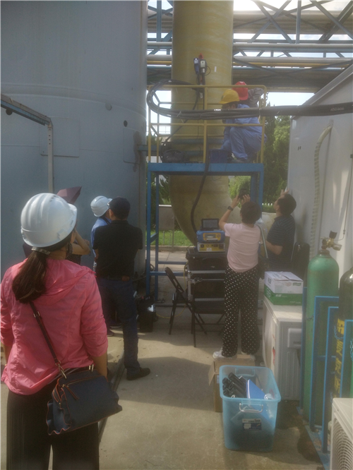 初秋的天气虽然已经褪去了夏日的炙热,但是还是白天的气温仍然能让人感受到未走远的酷暑,我公司技术人员踏着初秋的脚步,继续前行。九月初,我公司人员携带PF-300继续参与由江苏省环科院组织的非甲烷总烃便携式仪器与在线仪器的比对工作。此次参与比对的便携式仪器有4家,在线式仪器有4家。本次测试地点位于江苏省某大型化学公司,农药公司及大型石化公司。PF-300在本次测试中数据准确,表现稳定,数据变化趋势与在线数据变化趋势相符,得到专家的认可。测试期间,生态环境部监测司污染源处董处长、江苏省环保厅监测处王处长、南京市站于站、张主任等领导在扬子石化水厂净二装置现场考察PF300。