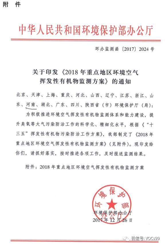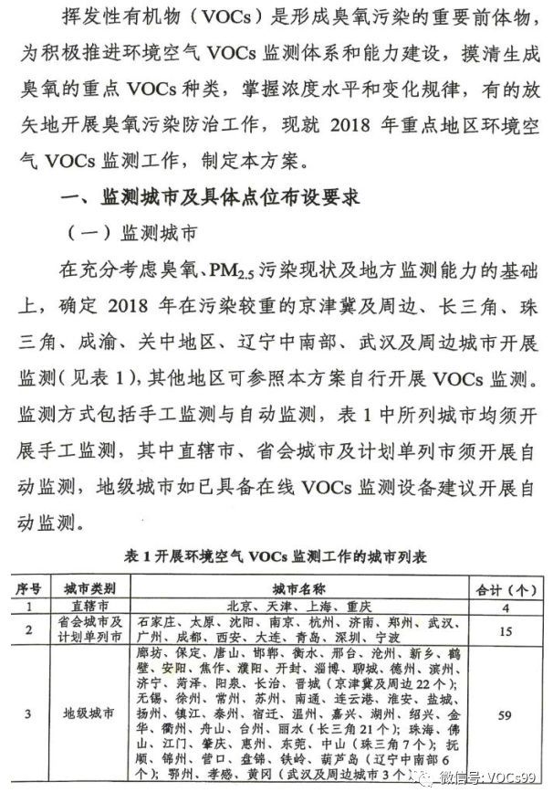 近日,环保部印发了《2018年重点地区环境空气挥发性有机物监测方案》。方案对于VOCs监测的城市、监测项目、时间频次及操作规程等做了详细规定。